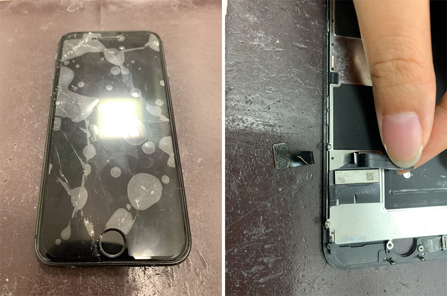 iPhoneに落下ダメージや強い衝撃が加わると、液晶と本体を接続するディスプレイケーブルが外れたり、壊れてしまうことがあります。