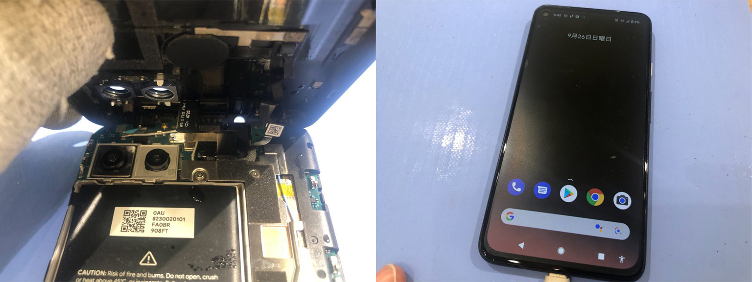 画面修理については、お使いのスマホのタッチパネル構造によって難易度が異なり、ガラス交換のみで済む場合もあれば、液晶や有機ELも交換しなければならない場合もあります。ただし、タッチ操作が一切無効になるような画面故障は基本的に後者に該当します。