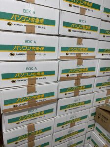 修理センターにはいつも修理依頼端末の箱がたくさん積みあがっています。
