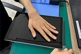 飲食チェーン店より、各店舗で使用する客席設置用のタブレットの専用カバーケースの破損(ケースと本体の接続ケーブル断線など)補修作業のご依頼。
