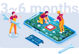 | 3. お見積りと修理時間目安のご案内 | 修理端末の状態とヒアリングの内容を基にお見積りをご案内いたします。また、その際に修理完了時間の目安をお伝えいたします。 |