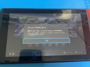 | 症状 | ゲームをダウンロードしようとすると「ダウンロードを中止しました。再ダウンロードはニンテンドーeショップでできます。」というエラーメッセージが表示される状態 |