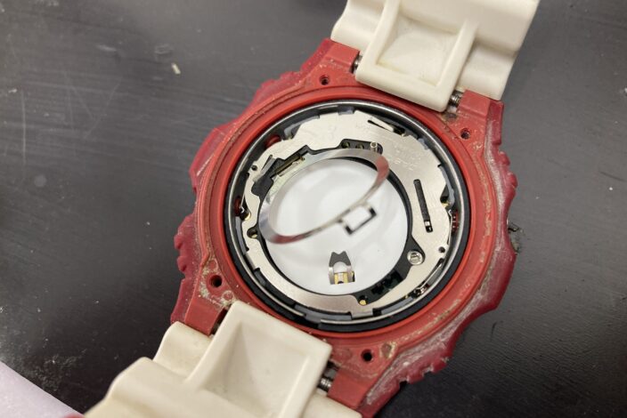 背面フレームを取り外しますと青い基盤が見えますので、続いてはこちらの右側を取り外していきます。