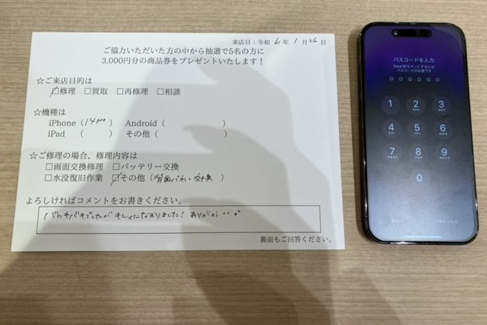 ご本人名義以外のiPhoneでも修理可能です。修理の際にiPhoneの動作確認を行いますので、事前にパスコード(ロック解除の暗証番号)をご確認ください。