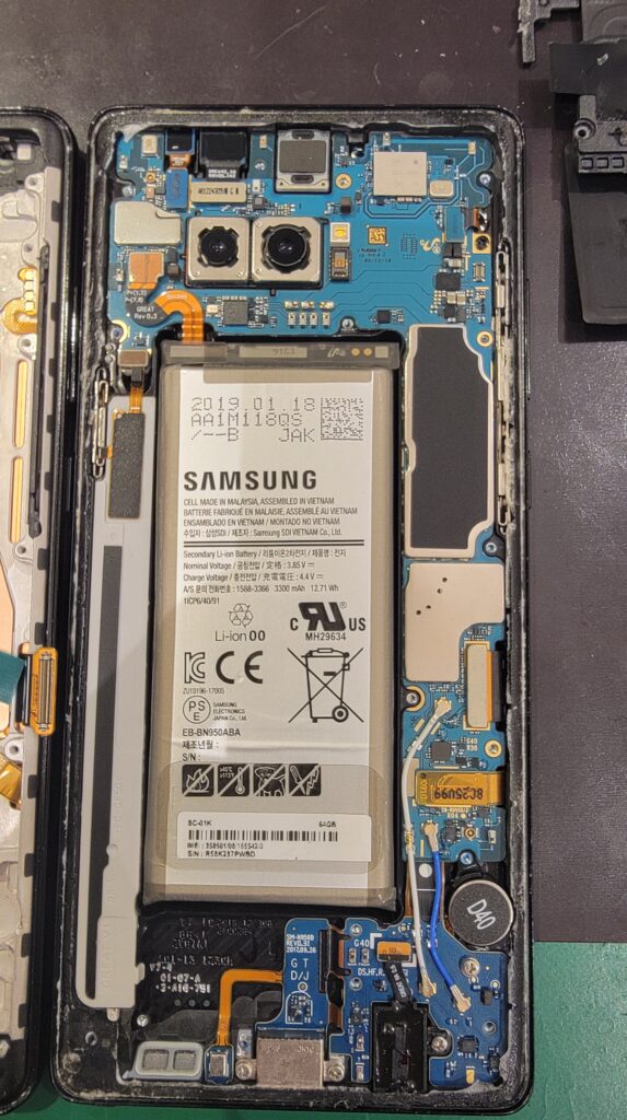 今回はGALAXY Note8のバッテリー交換修理をご依頼いただきました。以前は問題なく使えていたものの、最近になって充電の減りが早く、一日持たなくなったとのことです。