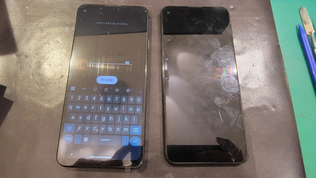 Pixel 5aでは、ガラス割れと同時に内部パネルが破損することがあります。