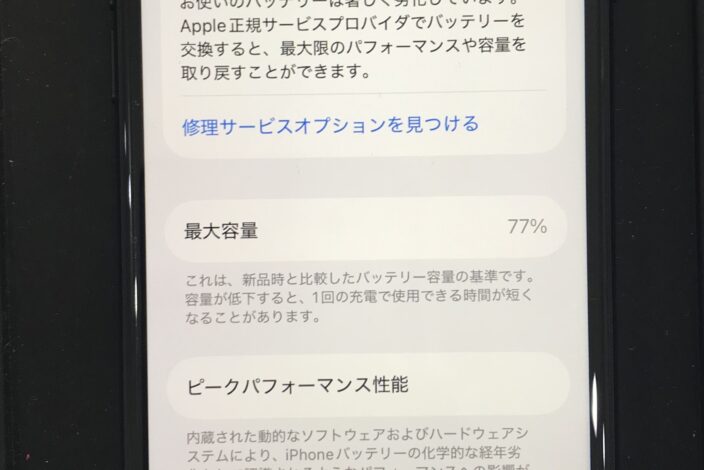 「設定」>「バッテリー」>「バッテリーの状態と充電」で最大容量を確認し、80%未満であれば交換をおすすめします。