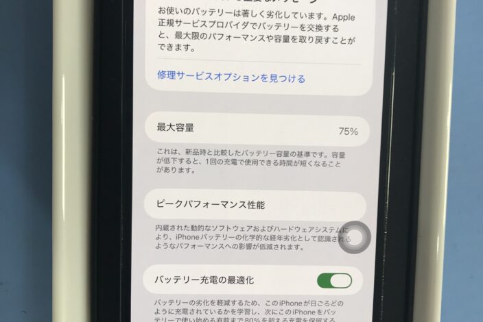 充電の減りが早く感じたり、最大容量が80%以下になっている場合は