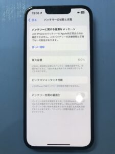 このように最大容量100パーセントの状態でご返却となりました。(機種によっては表示がなくなる場合がございます)