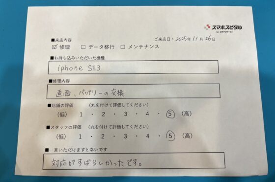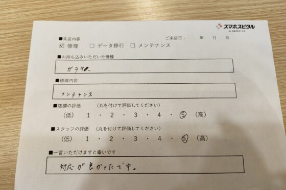 弊社の修理サービスをご利用いただいきましたお客様の声です。