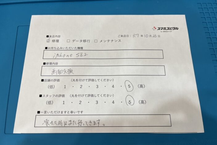 予約から修理までスムーズにありがとうございました。 説明も細かくしていただきました。