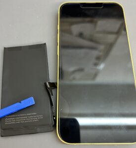 ではいつも通りの手順で開けますが、iPhone14などは背面から開けてバッテリー交換を行ないます。