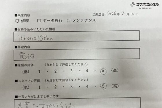 【iPhone13】バッテリー交換修理に関しましてお客様の声をいただきました!