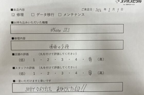 【iPhoneSE3】画面交換修理に関しましてお客様の声をいただきました!