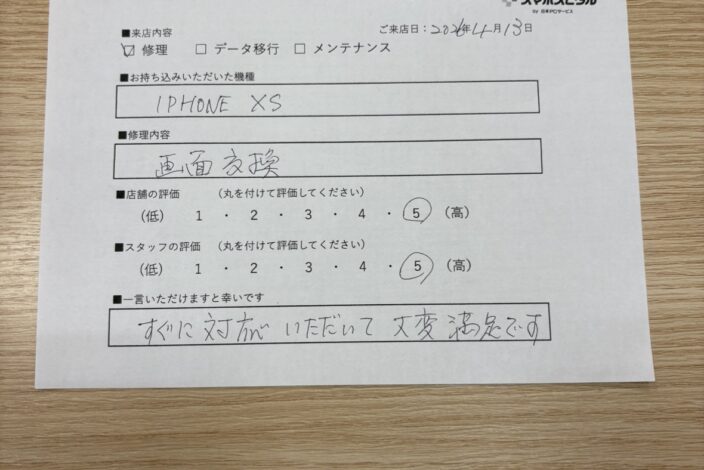 iPhoneXSの画面交換修理に関しましてお客様の声をいただきました!
