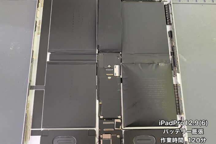 画面側から分解していくモデルで、防水・防塵のため強力なテープで固定されています。
