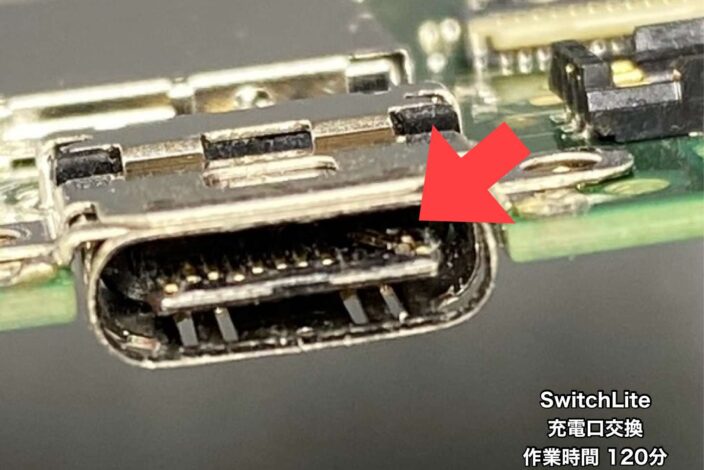 まずは充電口の端子が本体基板から外れていないかを疑います!!