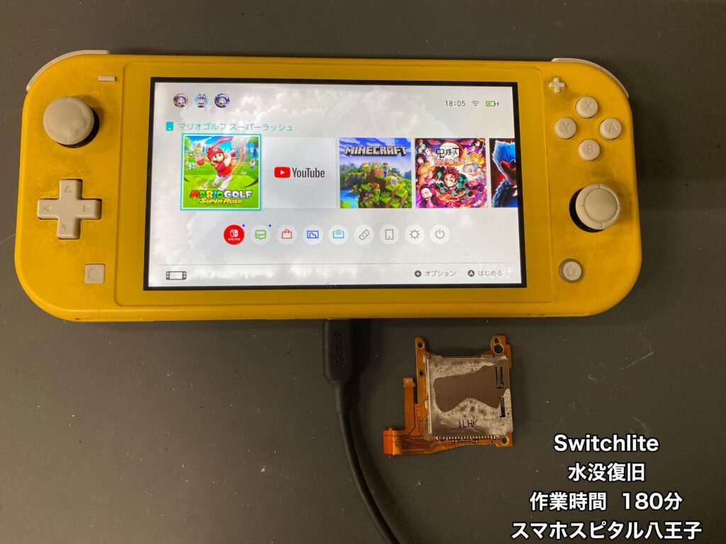 【SwitchLite 修理】ガッツリ水没させてしまった、直後から電源が入らない…修理のご相談はスマホスピタル八王子店へ!!