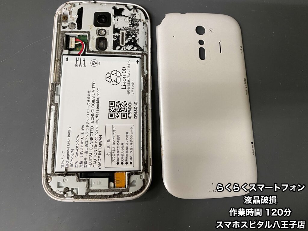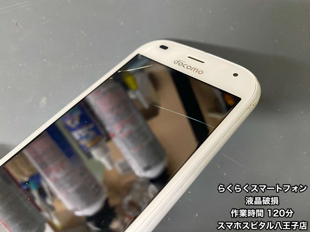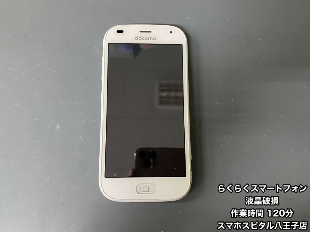【らくらくスマートフォン(F-42A)修理】着信音は鳴るのに画面が映らない…よくみると画面にヒビが!?修理のご相談はスマホスピタル八王子店へ!!