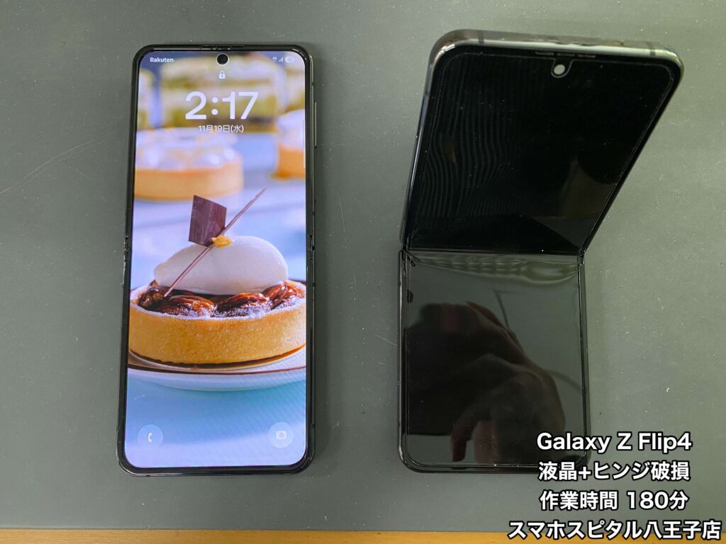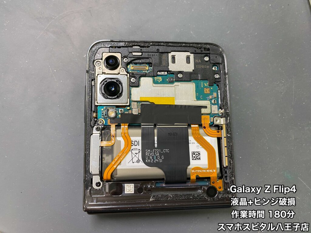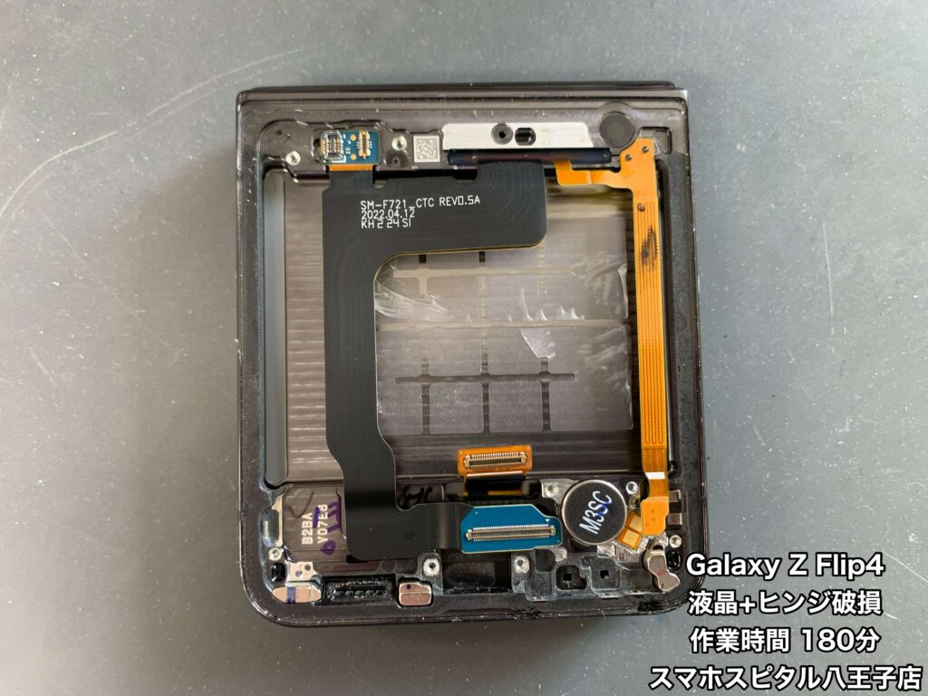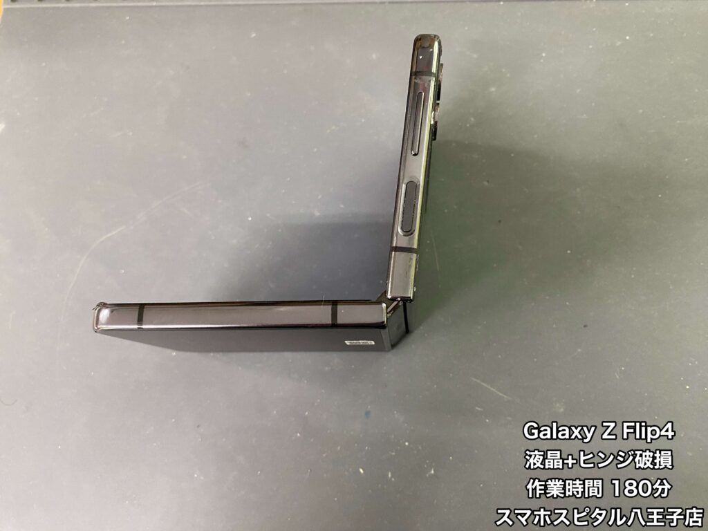 【Galaxy Z Flip4(SM-F721C)修理】端末が全開にできない。液晶も破損したので修理したい。修理のご相談はスマホスピタル八王子店へ!!