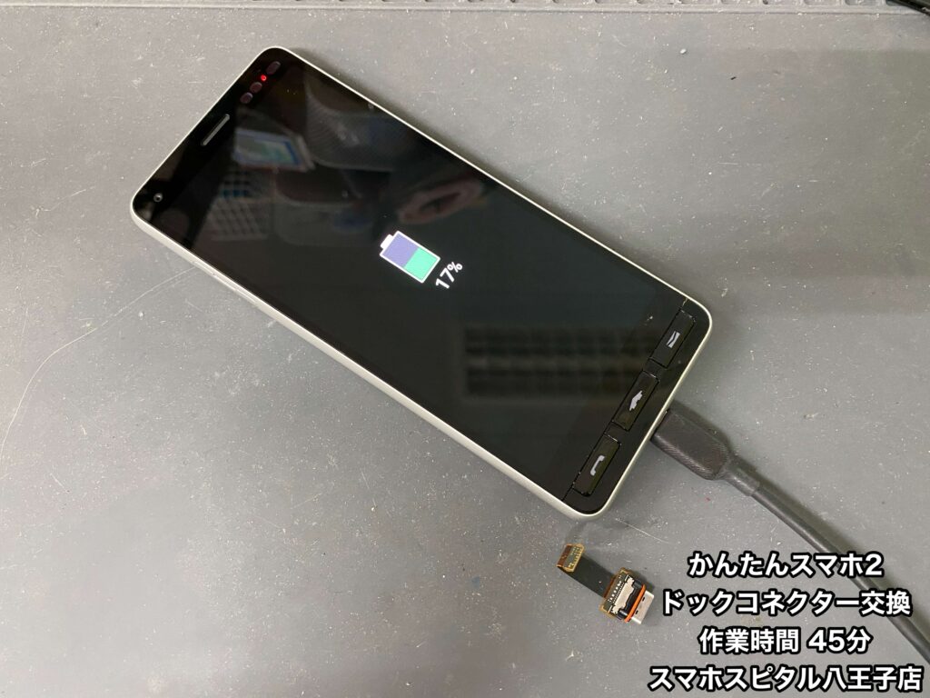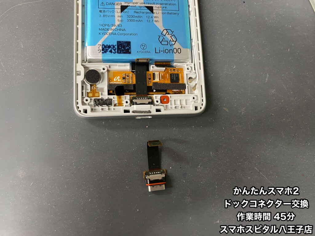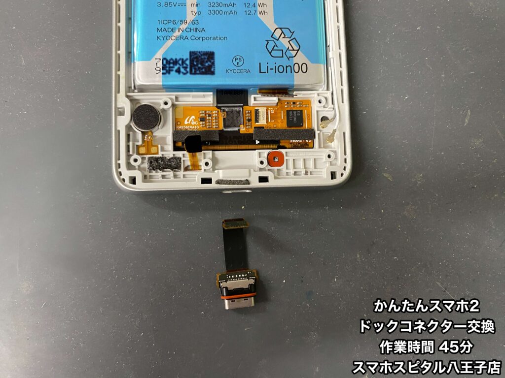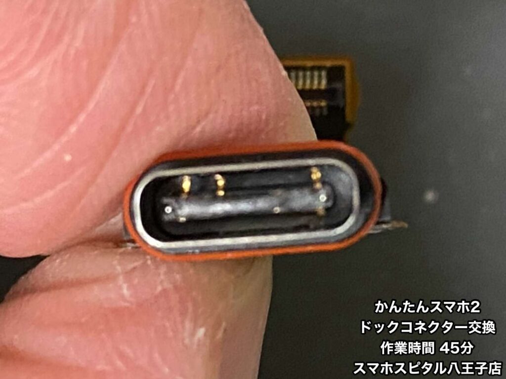 【かんたんスマホ2(A001KC)修理】違う端末のケーブルを差し込んで端子が破損。修理のご相談はスマホスピタル八王子店へ!!