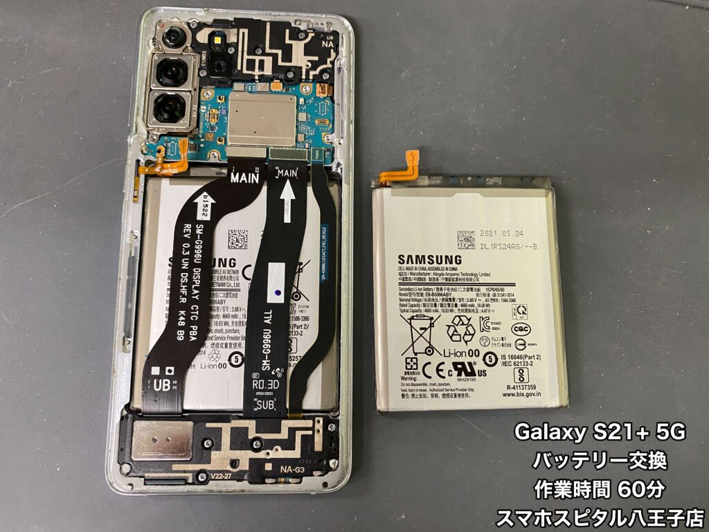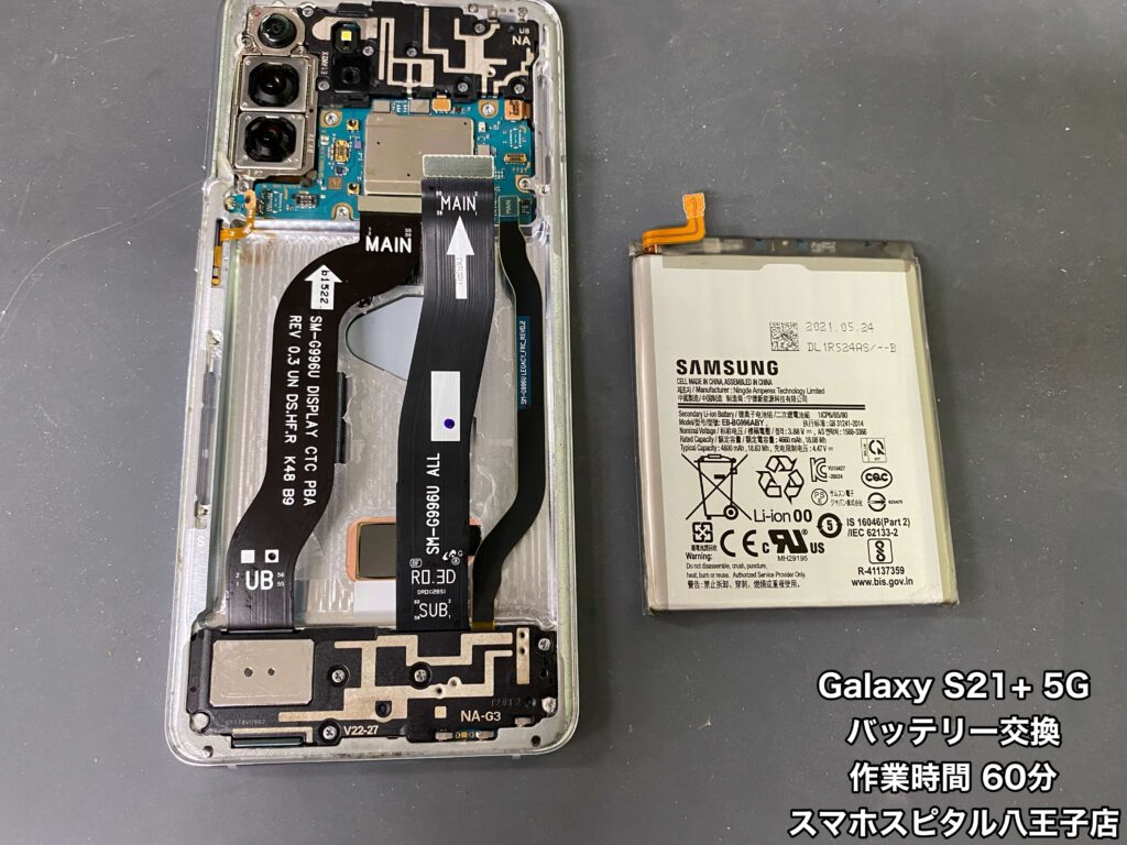 【Galaxy S21+ 5G 修理】水没して「Check BATTERY」の表示。充電できない。修理のご相談はスマホスピタル八王子店へ!!