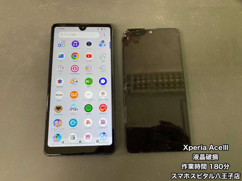 ▲画面交換修理したXperiaAceⅢ