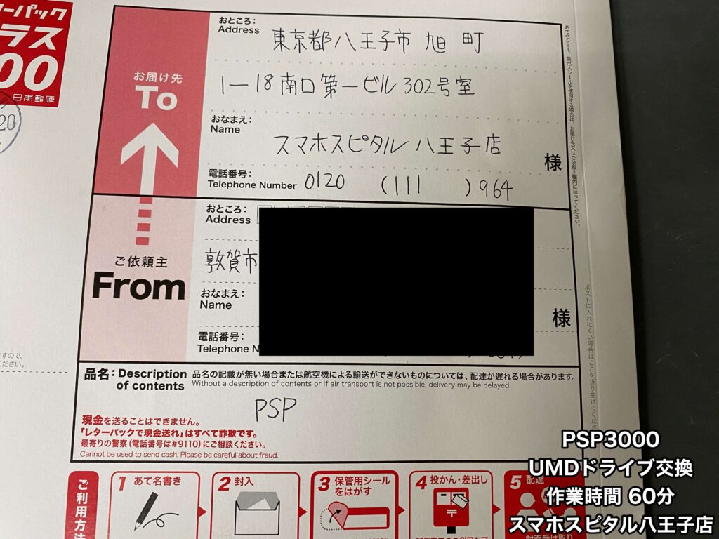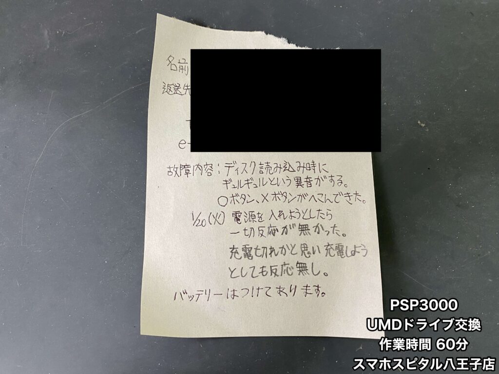 【PSP3000 修理】近くに修理店がない、店舗に行く時間がないなどお困りの場合は郵送修理をご利用ください!ご相談はスマホスピタル八王子店へ!!