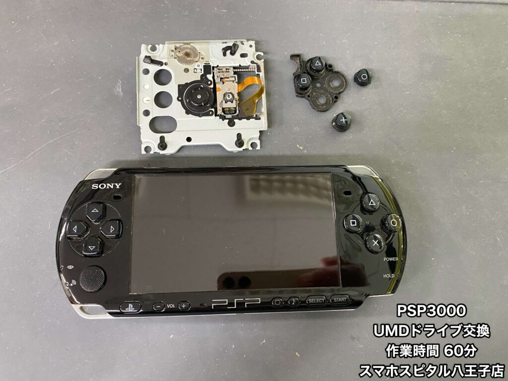 PSP3000のUMDドライブ交換、ボタンラバー交換修理を行いました。