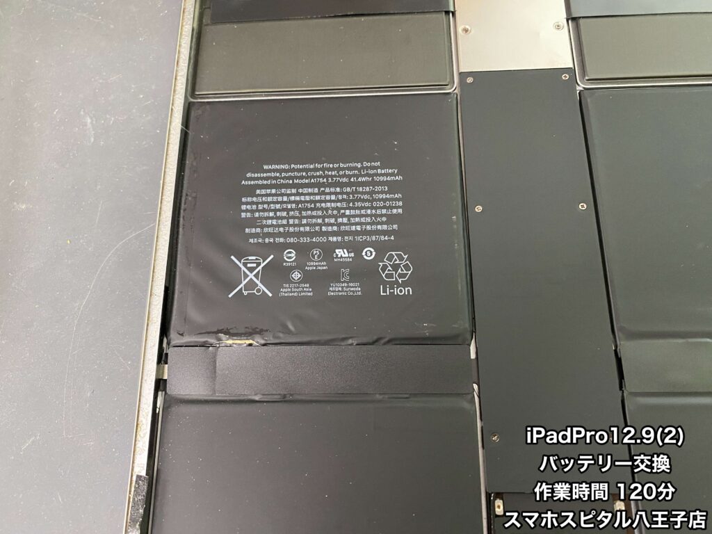 ▲バッテリー交換修理したiPadPro12.9第2世代