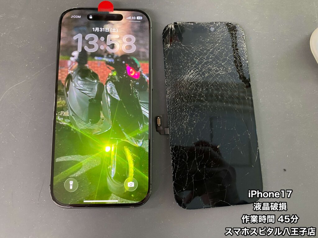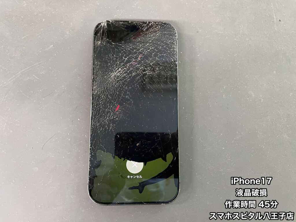 【iPhone17 修理】落として画面がバキバキに割れてしまった…ゴーストタッチも起こるけどギリギリ使用できる。修理のご相談はスマホスピタル八王子店へ!!