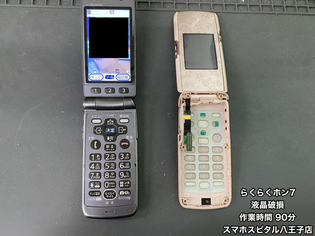 【らくらくホン7(F-09B)修理】データ移行したいのに画面が映らない。ガラケー修理もスマホスピタル八王子店へご相談ください!!