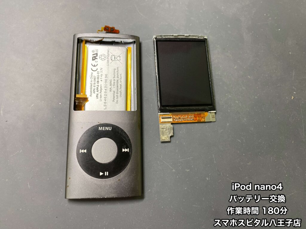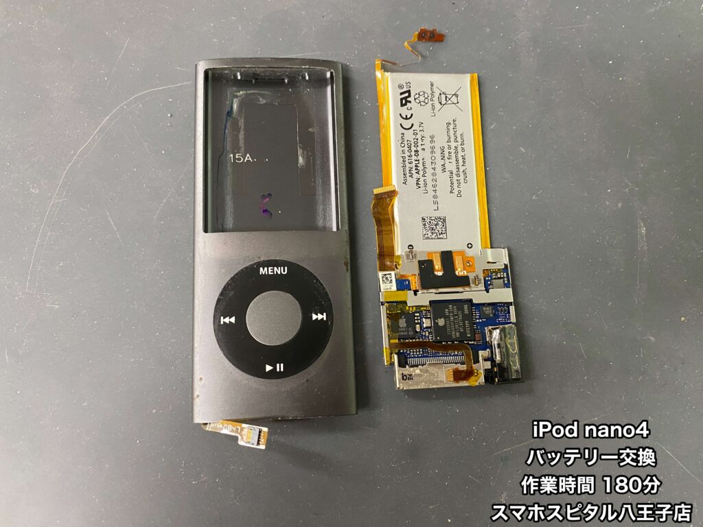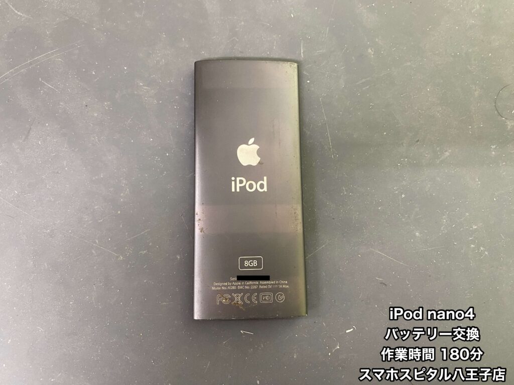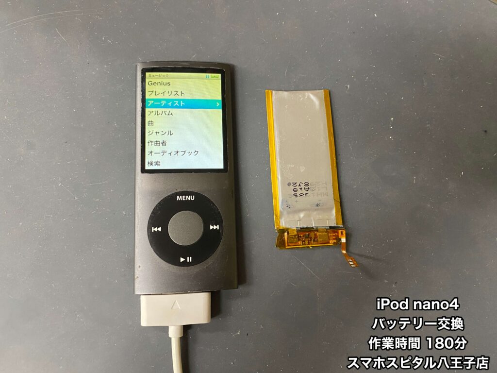 【iPod nano 第4世代 修理】バッテリーが2時間しか持たない。データ移行するのも不安。バッテリー交換修理のご相談はスマホスピタル八王子店へ!!