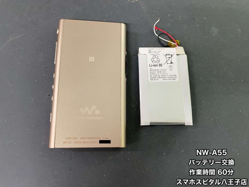 【WALKMAN NW-A55 修理】フル充電しても2時間も持たない。買い替えは高いのでバッテリー交換してほしい。ご相談はスマホスピタル八王子店へ!!