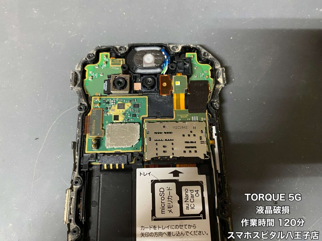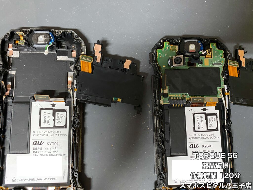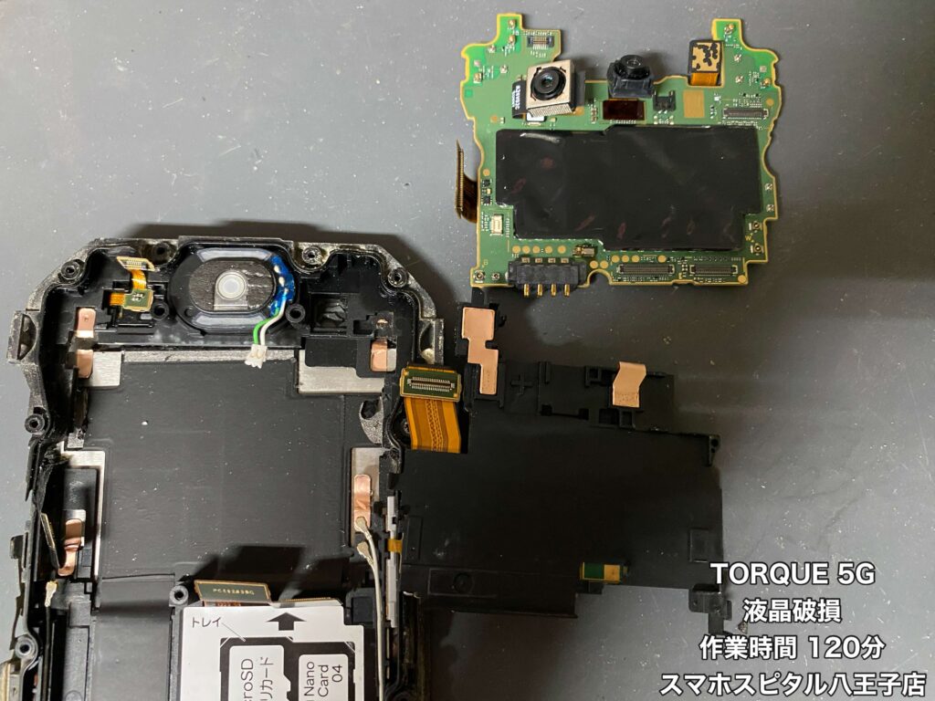 ただ、TORQUEは画面パーツのみの仕入れができないので、同じ端末を用意し基板を移植する修理方法となります。
