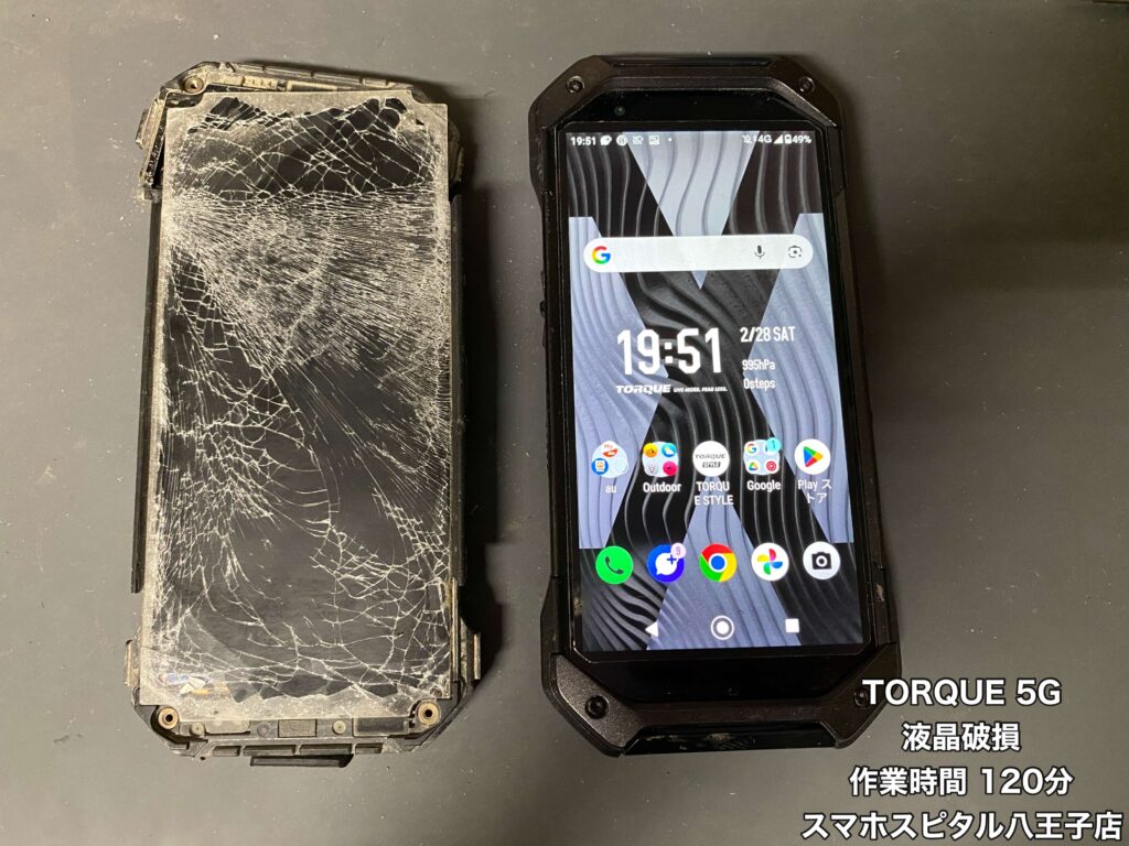 【京セラ TORQUE 5G 修理】画面がバキバキで使用できない。この端末にしかないデータがどうしてもほしい!!交換パーツが流通してない端末でもスマホスピタル八王子店なら修理できます!