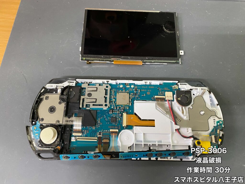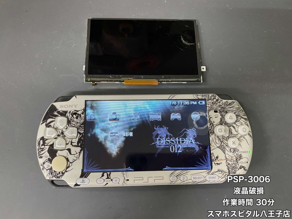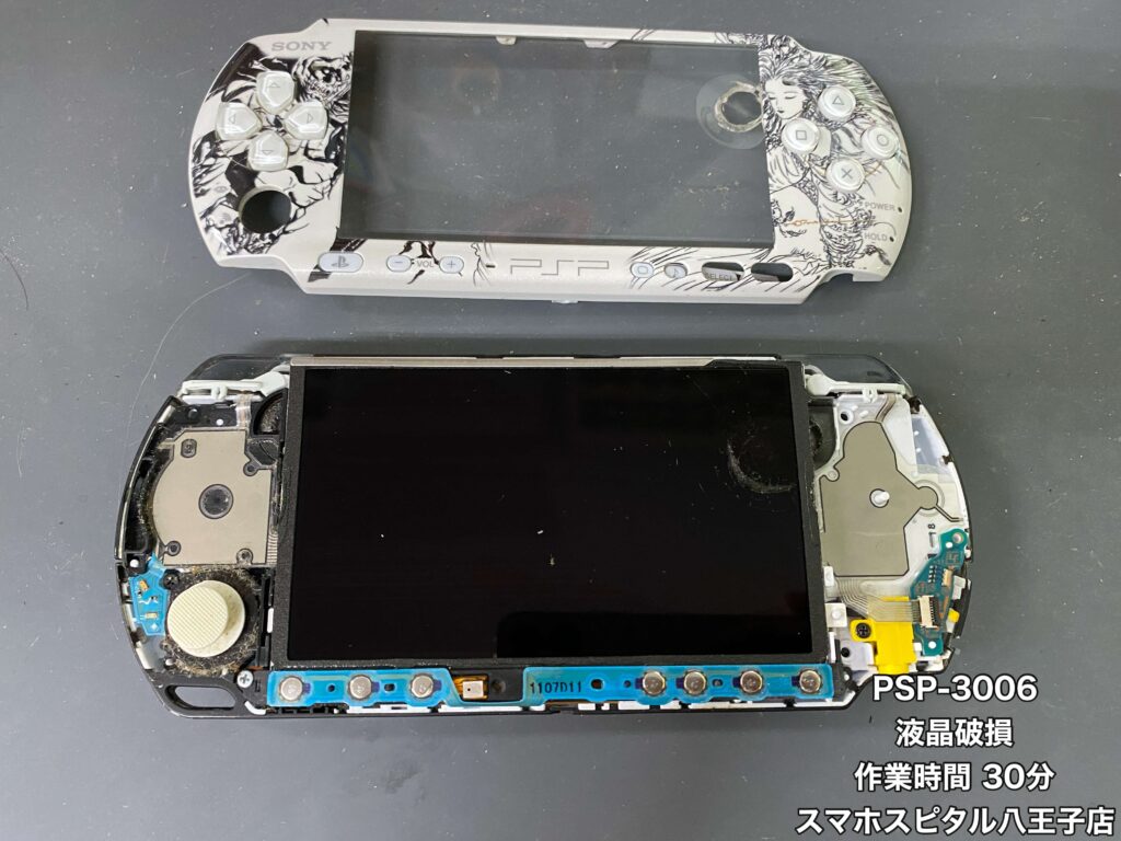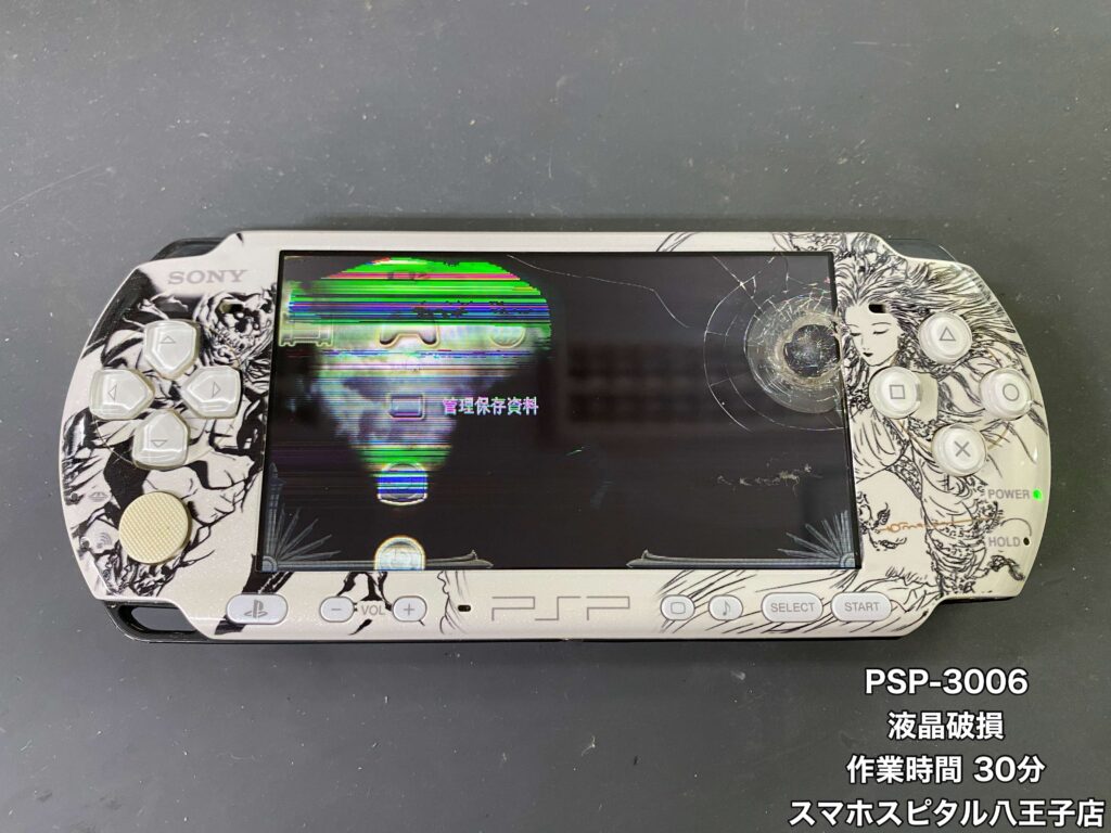 【PSP-3006(海外モデルのPSP) 修理】画面にモノを落として液晶破損…思い入れのある端末は買い替えよりも修理を!!ご相談はスマホスピタル八王子店へ!!