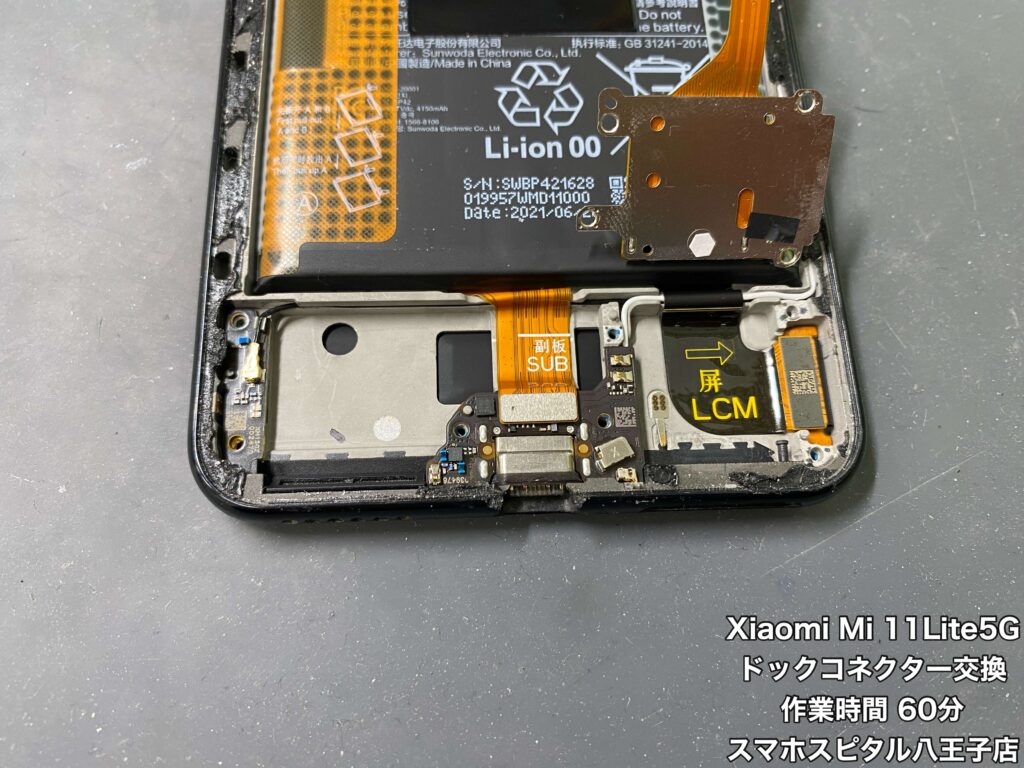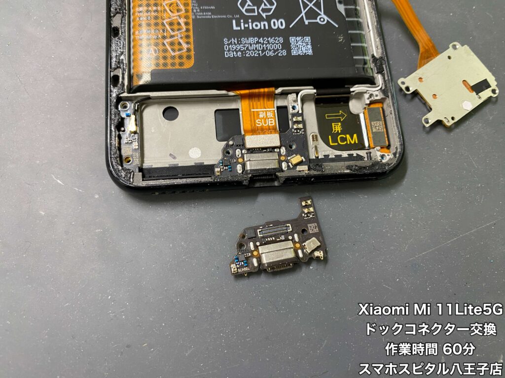 ▲ドックコネクターの交換修理をしたXiaomi Mi11Lite 5G