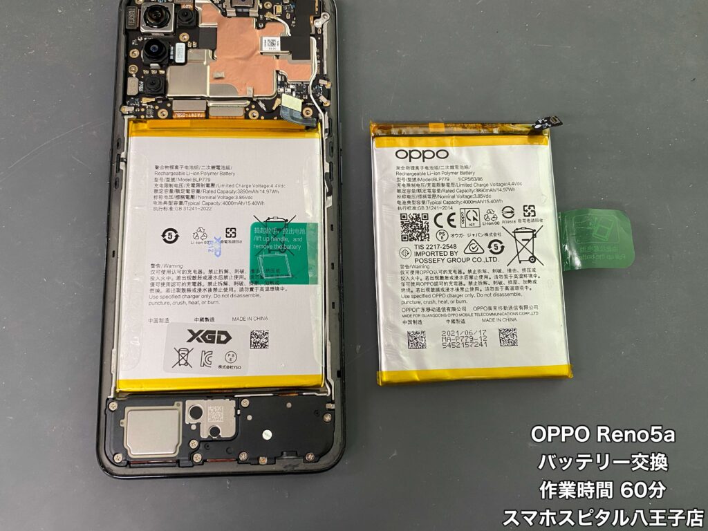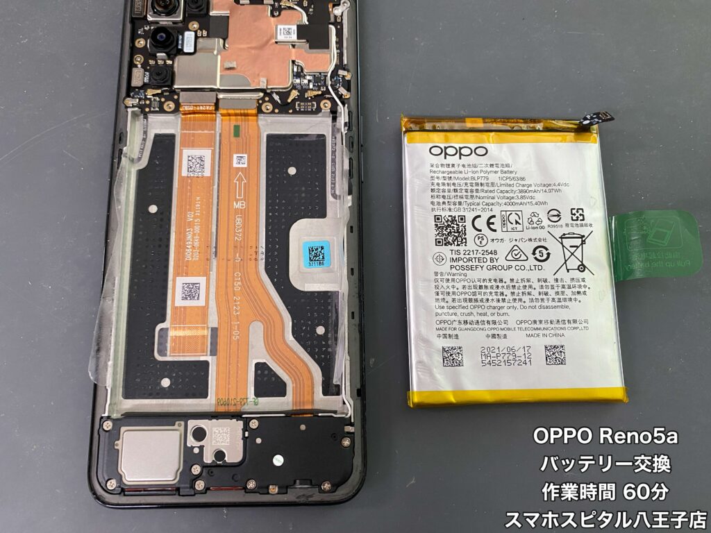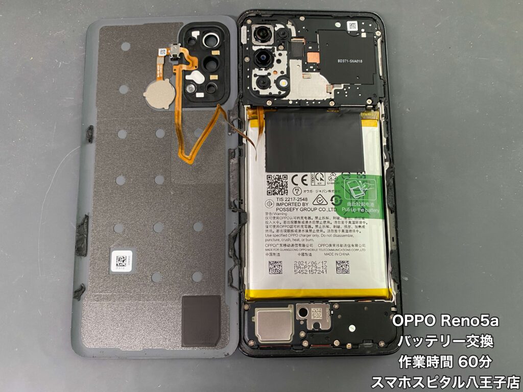 【OPPO Reno5a 修理】バッテリーの減りが早かったけどそのまま使用していたら充電しても電源が入らなくなってしまった。即日修理のご相談はスマホスピタル八王子店へ!!