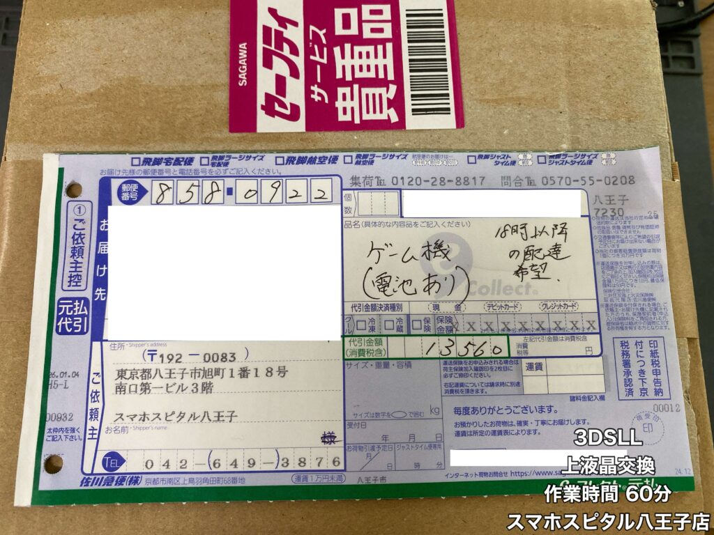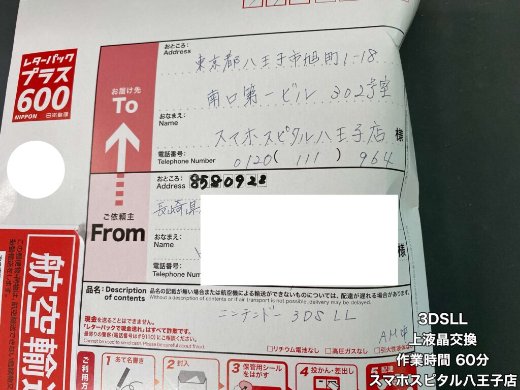 【3DSLL 修理】長崎から郵送修理のご依頼!修理端末の発送からお手元に戻るまでの実際の日数は?スマホスピタル八王子店で実際に行った修理でご紹介!