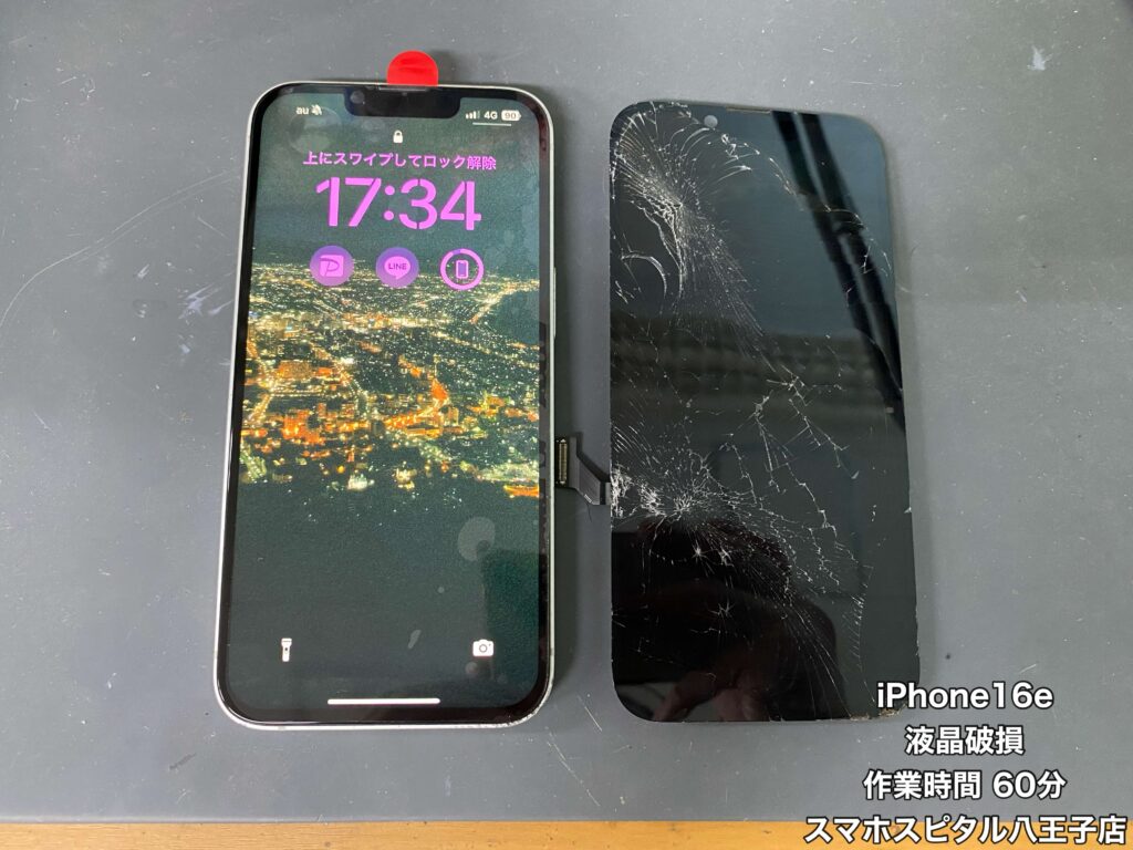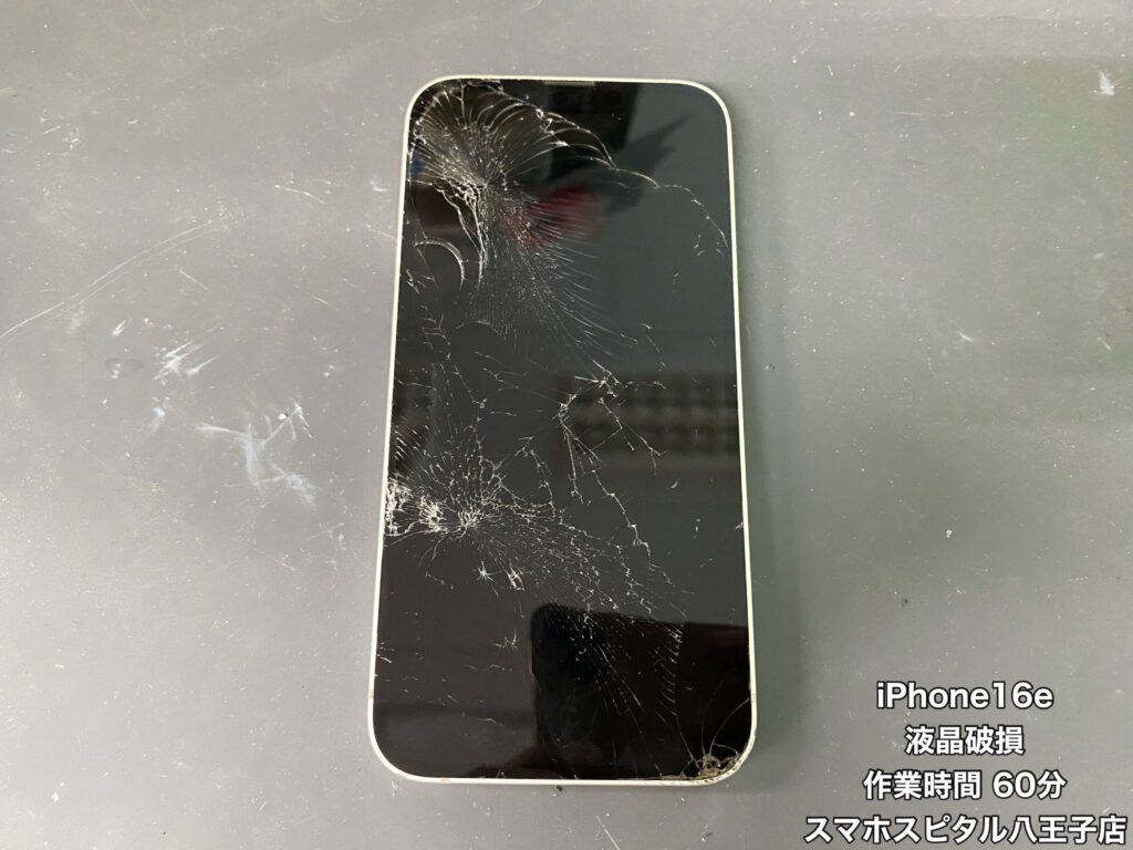 【iPhone16e 修理】液晶が割れて何も映らない。即日修理はスマホスピタル八王子店へお任せください!!