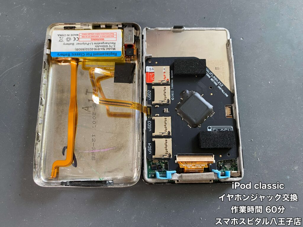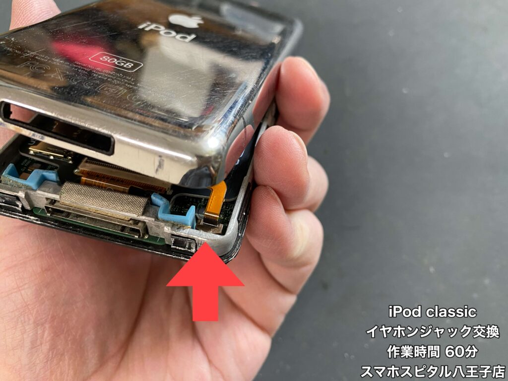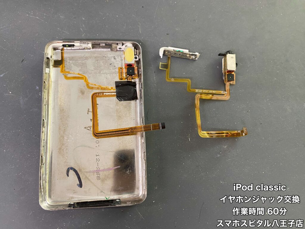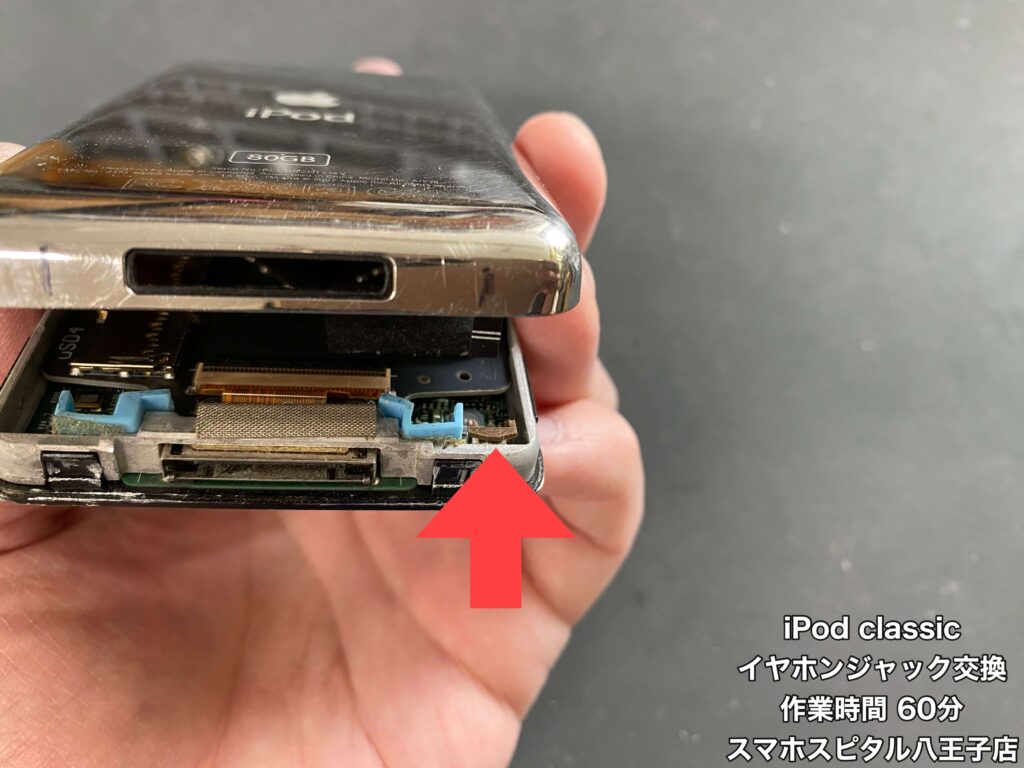 【iPod classic 修理】端子を動かすと音が聞こえなくなったりノイズが走ったりして音楽に集中できない。即日修理のご相談はスマホスピタル八王子店へ!!