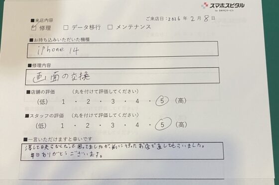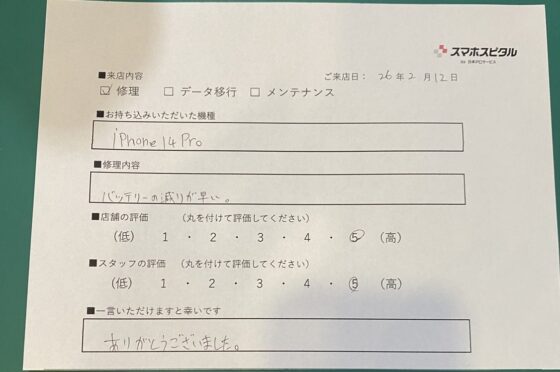 弊社の修理サービスをご利用いただいきましたお客様の声です。