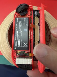 バッテリーの下にアナログスティックの部品があるのでバッテリーのコネクターを外した上でバッテリーも外していきます。