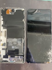 画面の取り外しをしていきます。本体と画面がケーブルで繋がっているので