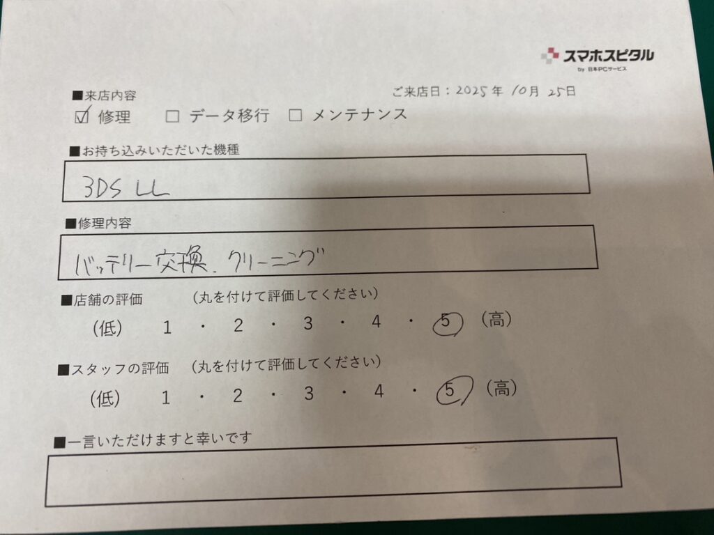 スマホスピタル姫路キャスパ 3DSLL バッテリー交換
