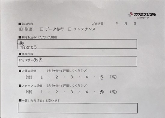 スマホスピタル姫路キャスパ iPhone13 バッテリー交換