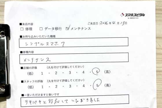 シンプルスマホ7 メンテナンス