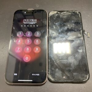 本日お持ち込みのお客様はiPhone15を落下させてしまった事により