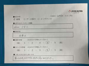 スマホスピタル 神田 iPhoneSE第2世代の充電口交換修理のお客さまよりコメントを頂きました。